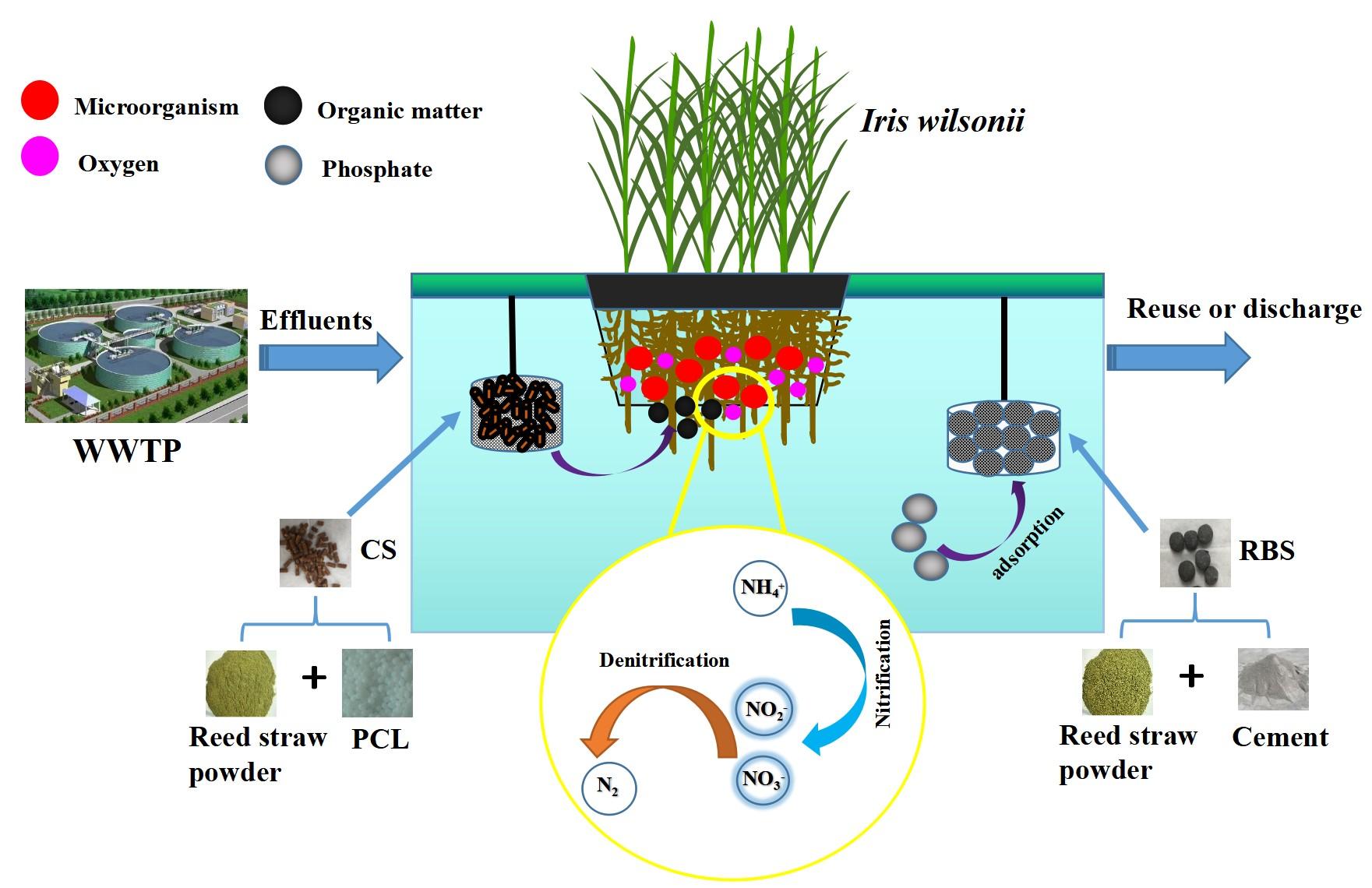 实验秉持“以废治废”的绿色可持续发展观念,利用湿地植物废弃物--芦苇秸秆为主要原料,制备了固体缓释碳源和铁改性生物炭填料,强化了生态浮床对污水处理厂尾水的脱氮除磷效果。与传统生态浮床相比,添加缓释碳源和生物炭填料后,对污水厂尾水中总氮和总磷的去除率分别提高了57.6%和46.7%,出水能够达到《地表水环境质量标准》(GB3838-2002)的Ⅳ类标准。16S rRNA高通量测序结果表明,缓释碳源和生物炭填料明显改变了生态浮床系统中微生物群落结构和多样性,参与硝化与反硝化的的菌属(如Pseudomonas、Rhodobacter、Hydrogenophaga、Bradyrhizobium、Acinetobacter、Thiobacillus等)的相对丰度显著增加。利用湿地植物废弃物强化生态浮床的脱氮除磷性能,为深度处理污水厂尾水提供了一种新的思路。