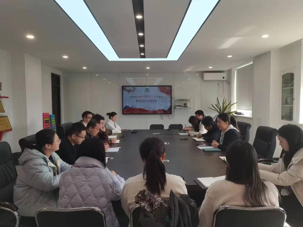 在博观楼429会议室召开2023年春季学期学生工作会议暨班主任工作交流会。学院党委书记张作祥、党委副书记孙竹媛、全体班主任和辅导员参加此次会议。会议由学院学工办主任刘妍妍主持。