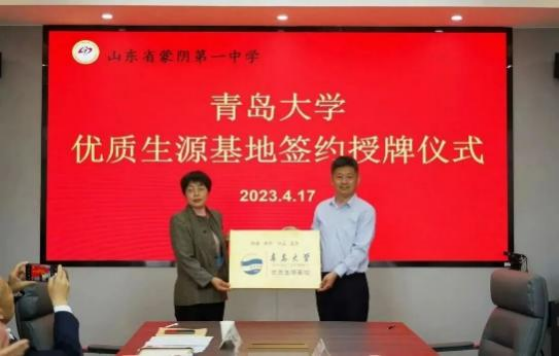 在蒙阴第一中学,双方举行优秀生源基地签约和授牌仪式,并重点围绕本科生招生和产学研合作等方面进行深入交流。蒙阴县人大常委会党组成员、副主任王锦栋、临沂市生态环境局蒙阴县分局副局长刘继奎和蒙阴一中副校长戚建芬、张茂贵等学校领导和年级主任参加活动。