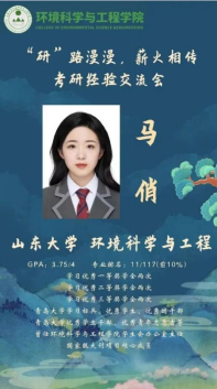 为帮助2024届毕业生对考研有更清晰的认知,激发备考信心、提高备考动力,5月8日至11日,由环境科学与工程学院团委主办、环境科学与工程学院学生会承办的“研路漫漫,薪火相传”考研经验交流会在博观429会议室举行,此次考研经验交流会分为南方专场、山东专场和京津沪专场,采用“线下+线上”的方式,邀请相应地区上岸的学长学姐传授考研心得体会,帮助同学们科学合理备考。