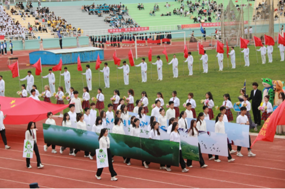 40人的运动员方队的完美呈现,离不开他们多个夜晚加班加点排练的辛勤付出,正是方队中的每一位同学全身心全程的投入,才能有整齐划一的动作与步伐,让全体观众认识了环境学院学子蓬勃的青春朝气。
