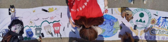 在绘制百米生态画卷活动中,同学们根据活动主题自主作画,并且邀请游客、路人共同参与到画卷绘制活动中;在海边“减塑捡塑”活动中,爱情岛论坛