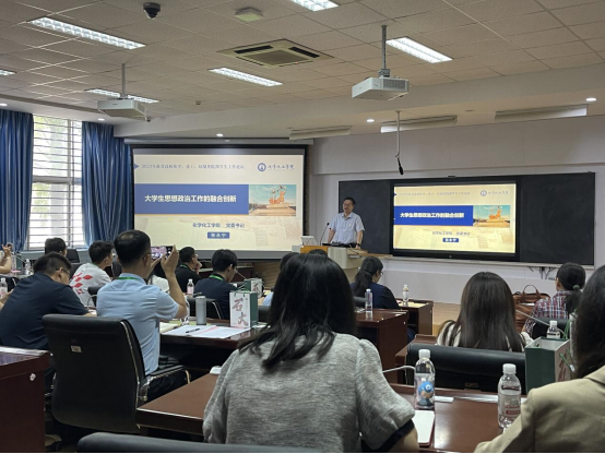 在开幕式上,中国石油大学(华东)化学化工学院党委书记张永宁作题为《大学生思想政治工作的融合创新》的主报告。