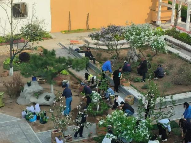 完成花卉栽种工作后,趁着午后暖阳,春风徐徐,同学们漫游韶园花间。向阳绽放的小雏菊,随风摇动的白丁香……园内花团锦簇、芬芳弥漫的春景,拂去了同学们额角的汗水,消解了同学们心间的疲惫。