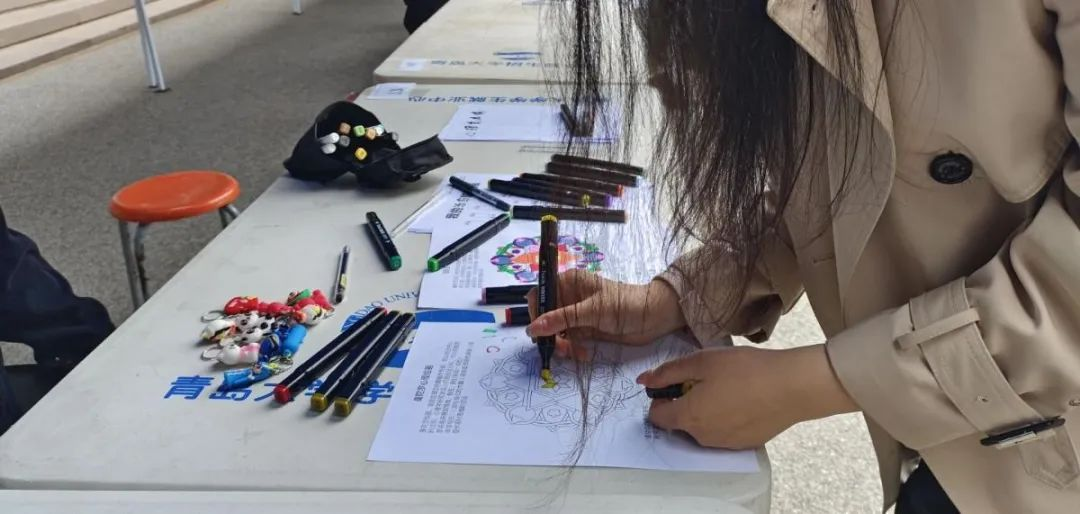 打印出曼陀罗彩绘,治愈能量瓶和心理自画像纸张。同学们可以从彩铅、彩笔以及碳素笔中选择一种进行绘画。心理自画像是将自己心目中的样子和自己现在的样子在纸上画下来。
