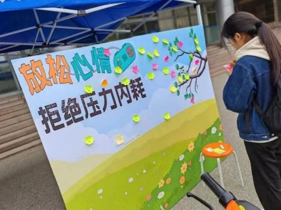 浮山校区博文楼前广场和金家岭校区剑湖旁同步举行“五育并举,共促成长”心理游园会。14个主题活动区,各种精美的奖品,吸引着两校区百余名同学驻足参与活动。