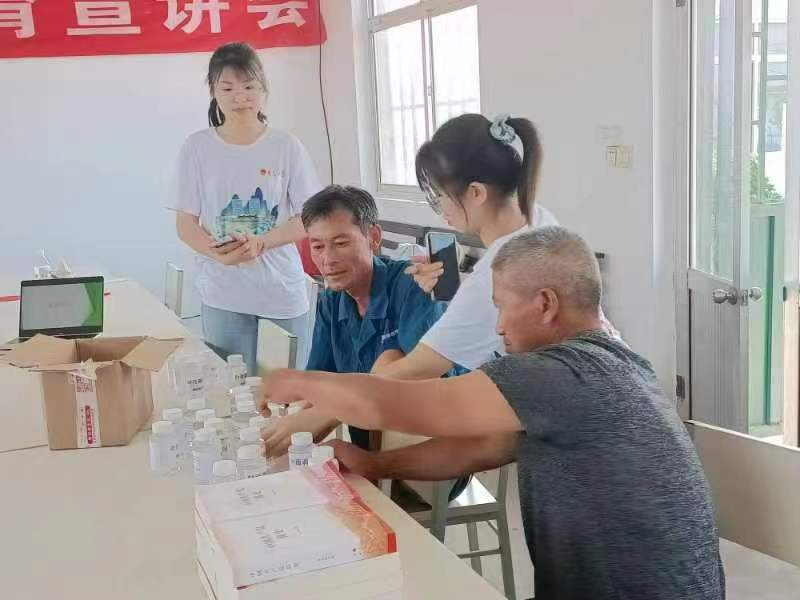 在中共莱西市委乡村振兴工作队管理服务办公室单海滨、莱西市夏各庄镇党委组织委员杨立岩和西夏格庄村党支部书记葛浩顺的陪同和介绍下,团队成员简要了解了西夏格庄村农业经济发展情况。接着,团队成员挨家挨户进行走访,还深入田间和大棚开展调研,了解村民对于农业技术、土壤化学污染、肥料使用、经济作物的种植和生长等方面的情况,并对不同作物的土壤进行定点采样和分装,便于后期进行实验室分析。团队还开设农业科学种植讲座,为与会村民介绍团队最新科研成果——糖醇螯合液体肥料,详细说明其实际效用和使用方法,并免费为村民分发样品。