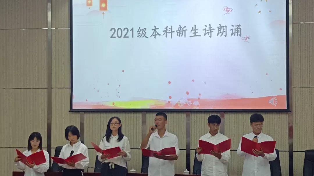 会上,对学院新聘任的2021级本科生班主任颁发聘书、为2021级学生班主任颁发荣誉证书,并为新生代表佩戴院徽、发放专属纪念照片。教师代表李亚如、校十佳学生干部、2018级3班班长张子漾和新生代表李瑶依次结合自身科研求学和成长经历做了发言。在集体观看了军训回顾视频后,新生以诗朗诵的形式,表达了对伟大祖国的深情祝福和“请党放心,强国有我” 的铮铮誓言,新生的集体宣誓则表达了同学们学好本领、服务社会、报效祖国的责任感和使命感。