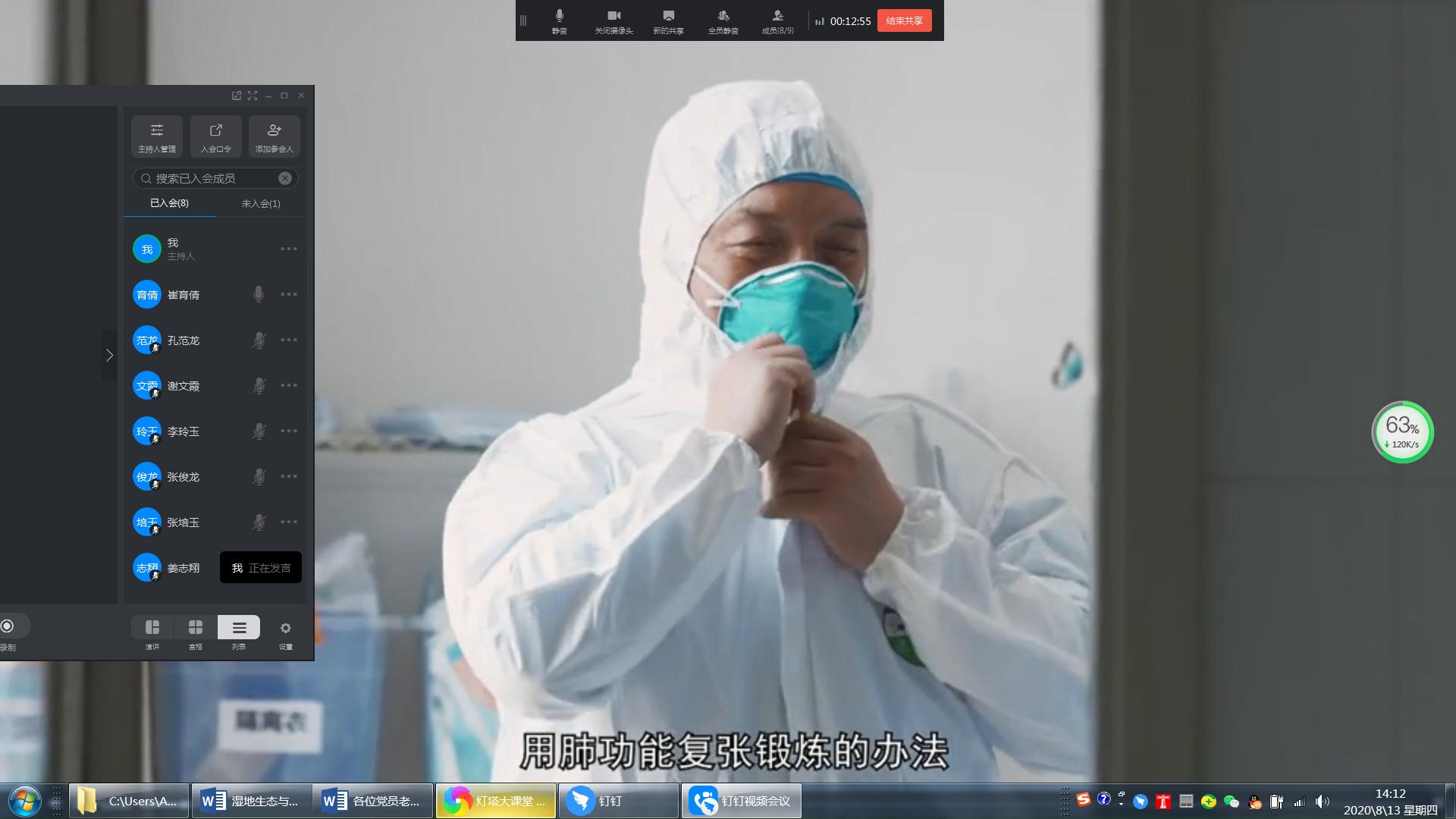 8月13日下午,环境生态系教工党支部利用钉钉网络平台举办“感受榜样力量,学习‘抗疫精神’”党员活动日。党支部书记王森主持,全体党员参加。