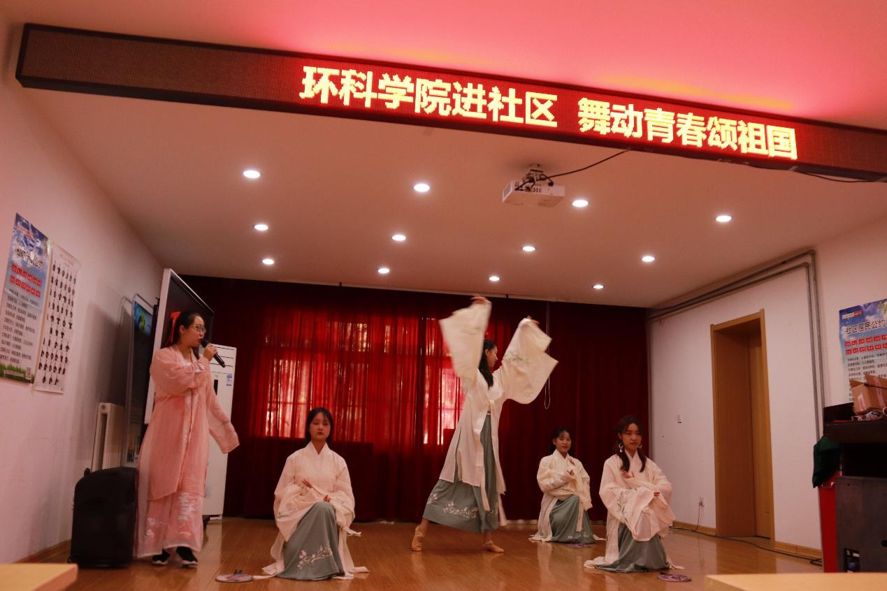 2018级刘欣易和张雯淇同学带来激情洋溢的爵士舞,来自新疆的2019级布比帕提马·阿依提和米热班·坎木都拉两位同学表演了一段别具风情的民族舞蹈,最后,2018、2019级的张嘉乐、朱小轩等七位同学登台表演的温柔婀娜的歌伴舞。优美的歌声和轻快的舞步,为社区居民带来的一阵阵欢声笑语,为仙游路社区增添了一份喜庆的气氛。