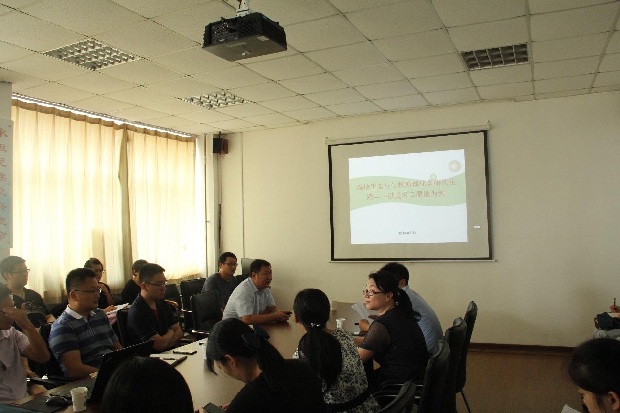 师生作了题为“湿地生态与生物地球化学研究实践——以黄河口湿地为例”的高端学术报告。报告会由环境科学与工程学院副院长孔范龙主持,与会师生40余人。