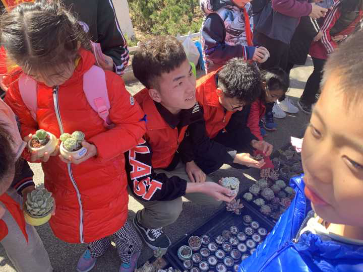 浮山校区东院举办了“关爱来自星星的孩子——走进自闭症儿童”多肉植物爱心义卖活动。