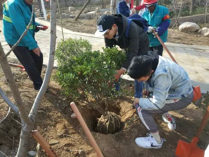 同学们带着铁锹、水桶和树苗来到指定地点挖坑、施肥、培土和浇水,大家亲手种下一颗颗树苗,为春天带来了生机和活力。之后,同学们拍照留念。为保证树苗的存活,还安排了专人负责树苗后续的维护工作。