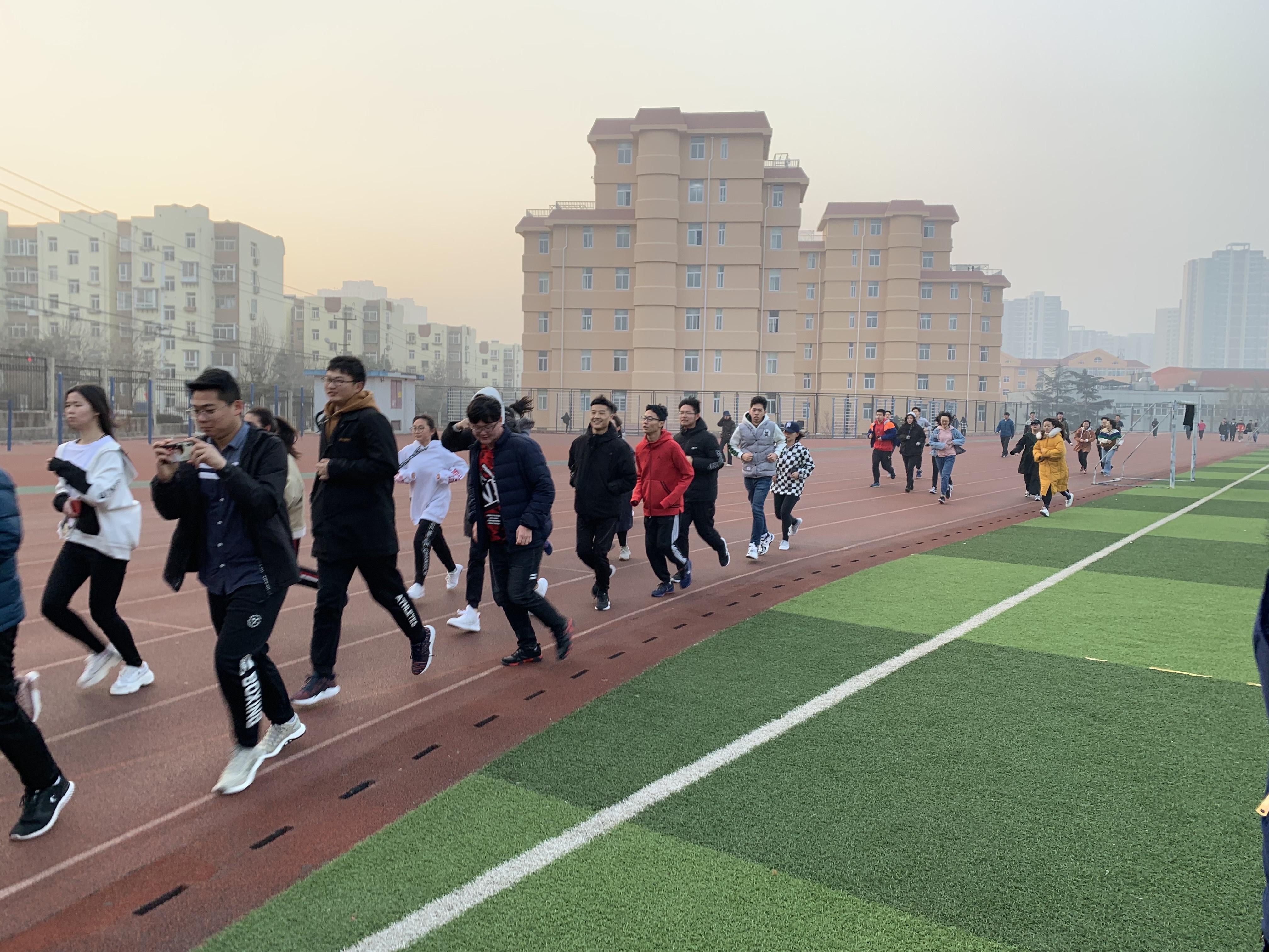 学院全体学工人员参加启动仪式。院学生会办公室部长王超同学向同学们宣读了活动倡议。学生辅导员王会萃老师强调了纪律。学院党委副书记张作祥向同学们阐释了这次活动的意义,提出了端正态度、持之以恒和注重实效的要求,号召同学们动起来、学起来。接下来,2018级全体同学和2017级所有班团、学生会成员成群结队迈开矫健步伐开始晨跑,正式拉开了活动序幕。按照计划,晨跑·晨读活动定在每周一、三、五的早上6点半开始,并将长期坚持下去。