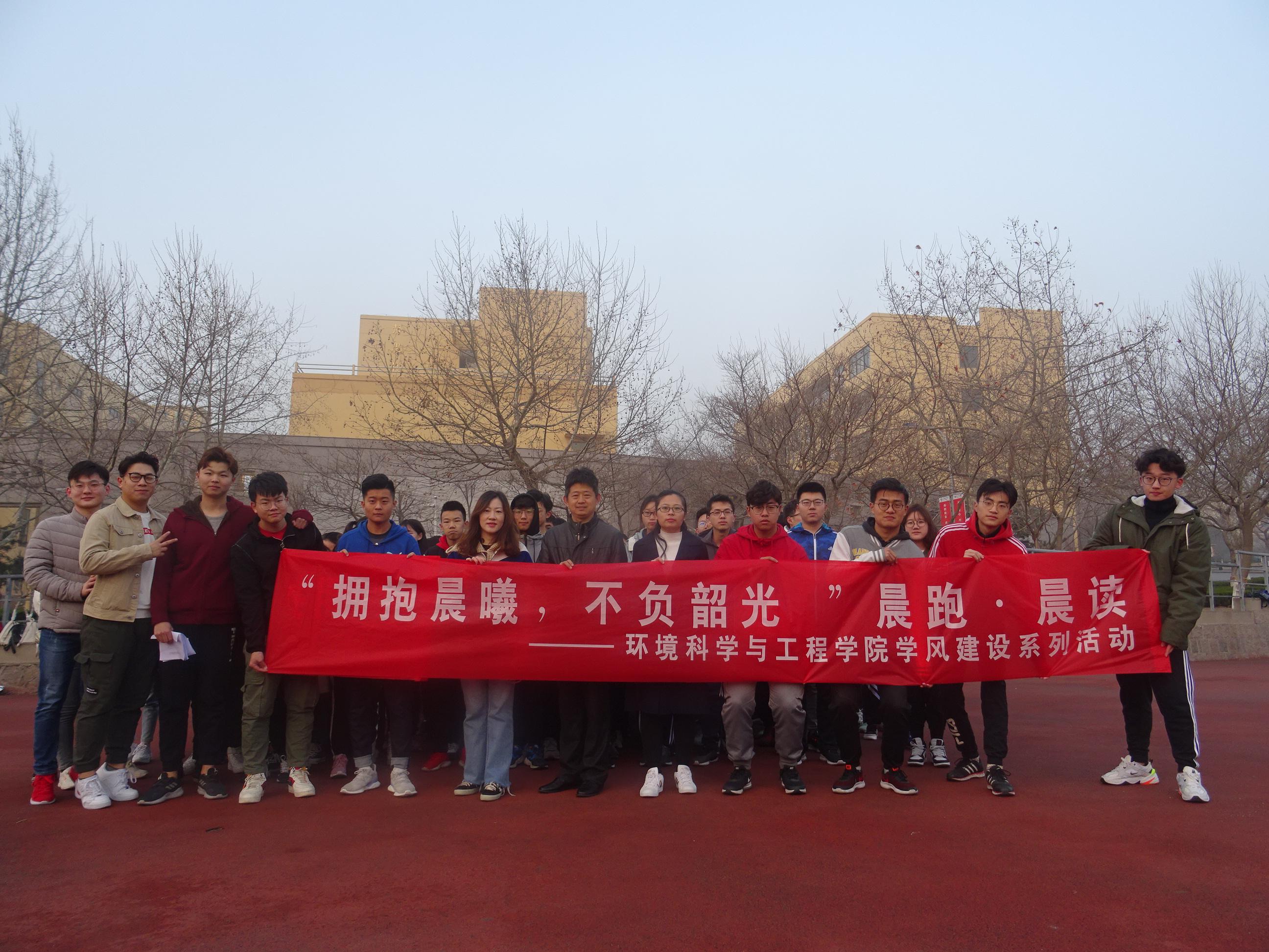 为贯彻落实全国全省教育大会精神,促进大学生德智体美劳全面发展,培养有高尚品德、有扎实学识、有健康体魄、有审美情趣、有劳动精神的新时代大学生,继2018年“岁月不居,时节如流”大学生晨跑·早读活动,3月6日清晨,环境科学与工程学院在浮山校区东院操场开启2019“拥抱晨曦,不负韶光”大学生晨跑·晨读活动。