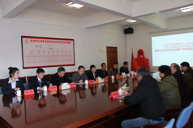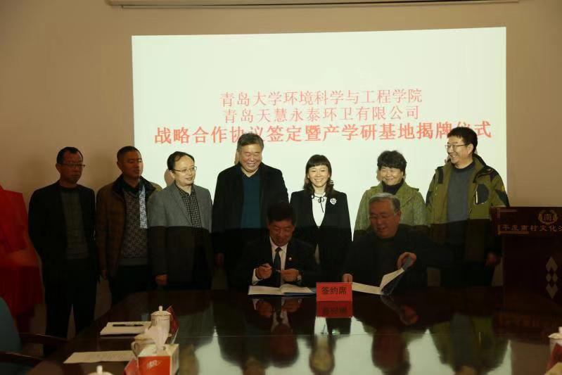 12月10日上午,环境科学与工程学院和青岛天慧永泰环卫有限公司战略合作协议签署和产学研基地揭牌仪式在平度市南村镇党委三楼会议室隆重举行。