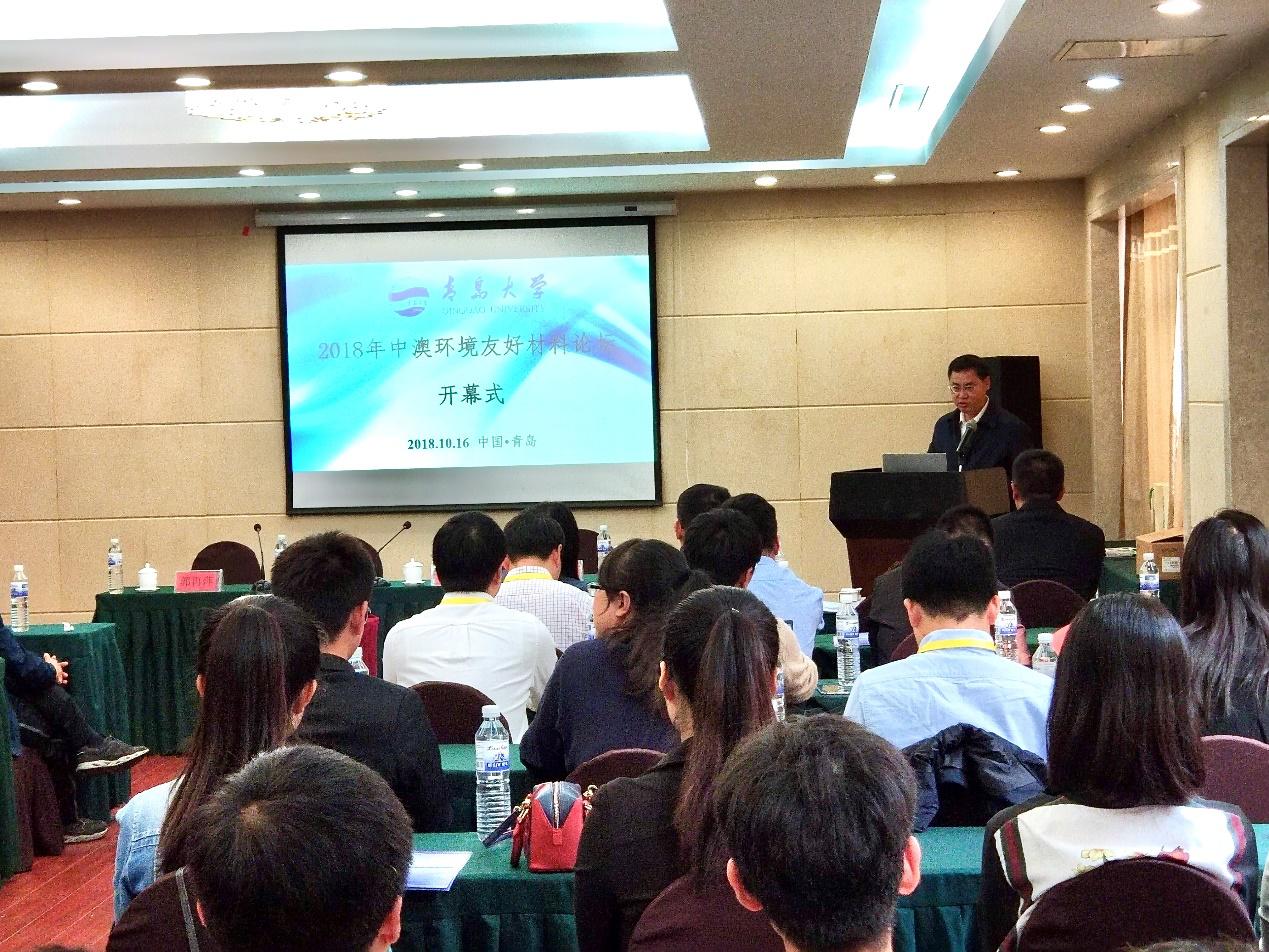 的建校历史、发展现状和办学特色,指出本次论坛阵容强大,所邀请的专家学者均是能源与环境材料界的活跃科学家,是一次高水平的学术交流盛会,希望在中澳同行们的共同努力下,办出水平、办出品牌,不断增强世界声誉与影响力,也希望中澳专家学者藉此平台进行学术交流与思想碰撞,共同推动环境友好材料领域科技的发展。