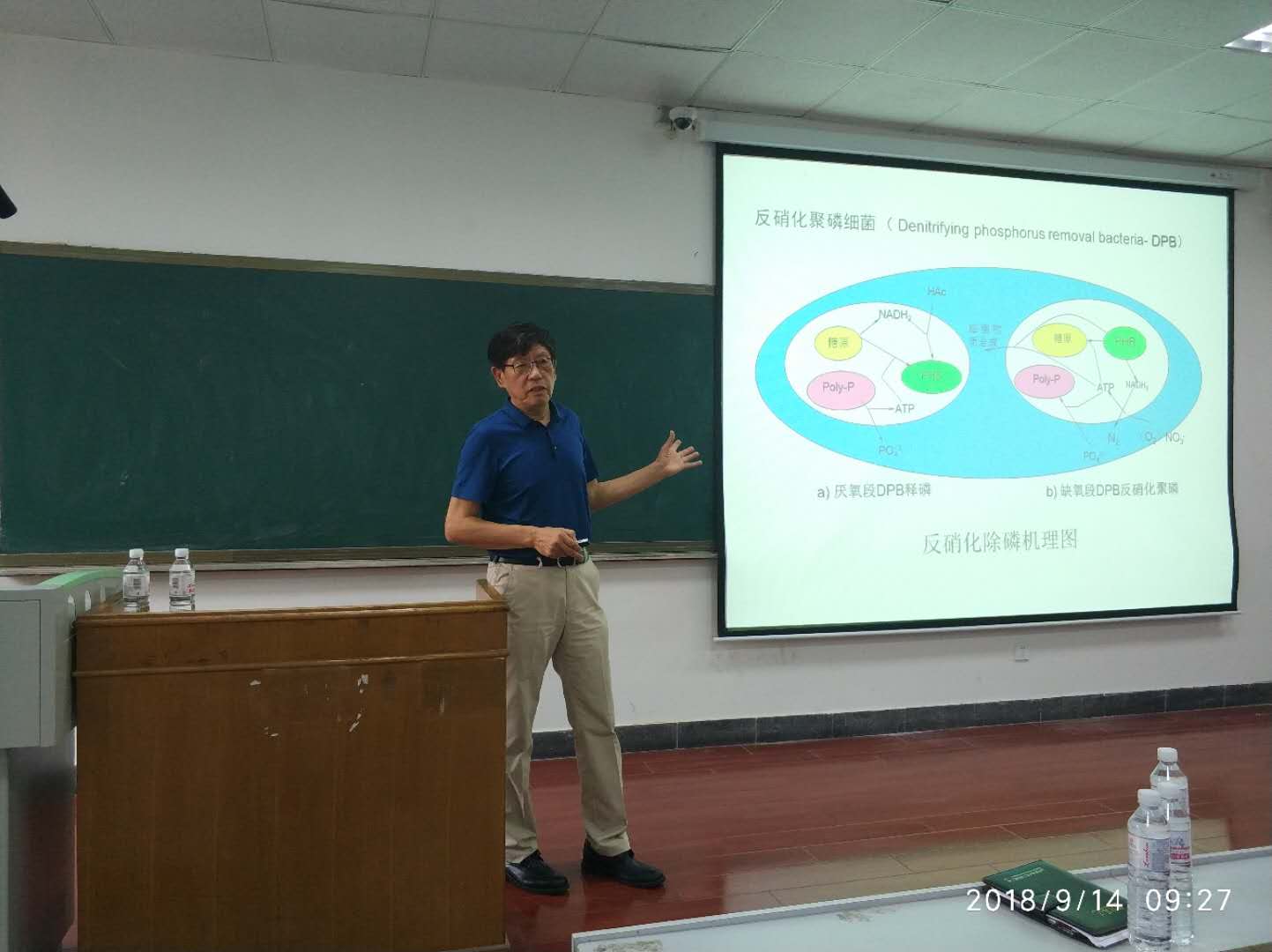 做题为《AOA异养与自养耦合污泥减量强化城市污水深度脱氮脱磷》的高端学术报告。报告会由李悦院长主持,来自全校约200名师生到会。
