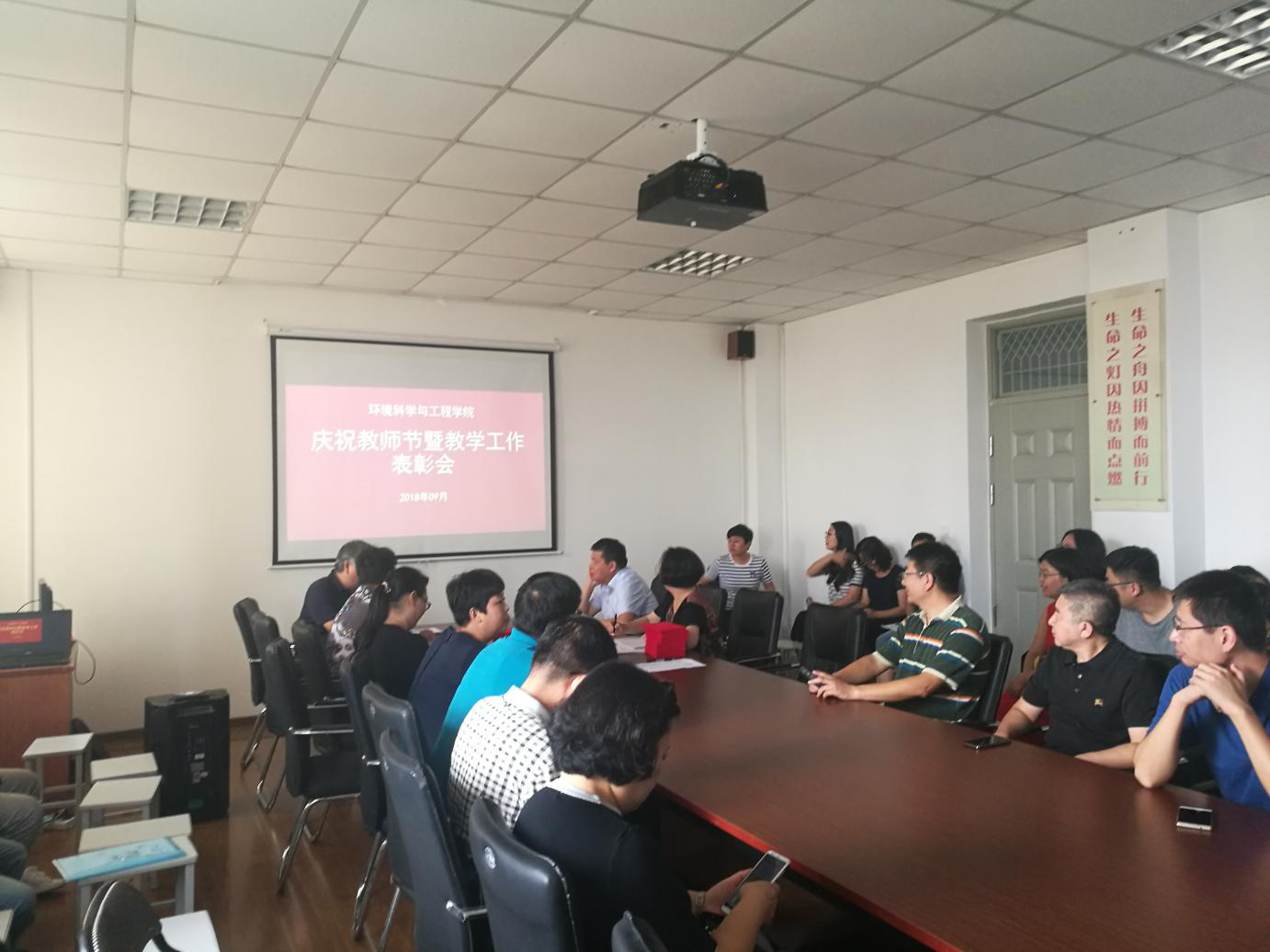 在第34个教师节到来之际,9月11日上午环境科学与工程学院组织全院教职工在诚思楼406会议室召开庆祝教师节暨教学表彰会。学院党委书记沈贵荣主持大会。