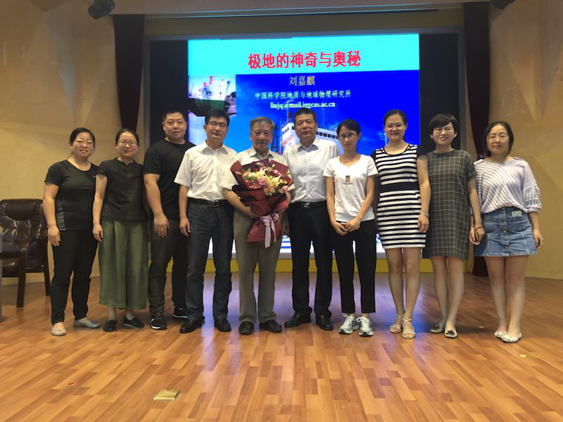 刘嘉麒院士参与和组织了我国的极地考察,两赴南极、三赴北极,利用冰芯和岩芯证据,研究气候环境变化,并曾担任南极考察队首席科学家。报告中,他从简单的概念引入,介绍了亲眼所见的南北极如企鹅、地衣、磷虾、鲸类和号称“鸟中之王”的燕鸥等奇特的动植物,带领大家领略了极地的神奇、探索极地的奥秘,还向师生介绍了科考队员在极地的日常生活与趣事。他特别强调,南北极研究的意义重大,不仅是诸如温室效应、气候旋回、臭氧洞现象等全球问题能从极地研究中获得重要发现,而且蕴藏着丰富的自然资源和科学奥秘,从天文地理到生态环境,无所不包,尤其在极地条约框架下,极地考察是经济、政治、军事的需要,是强人的事业和强国的象征,我们国家应该加大研究力度、加快研究速度,彰显综合国力,不受制于其它国家。讲座结束后,刘院士与师生们互动交流,他热情而细致地解答了师生们提出的科学问题、人生发展、就业选择、学科建设等问题。