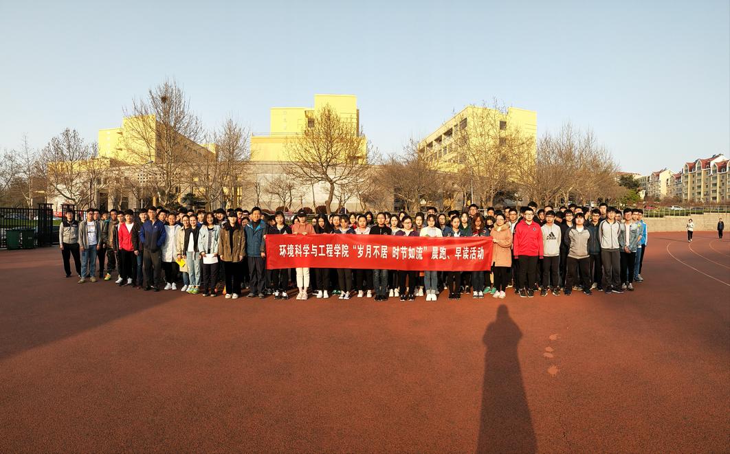 为响应学校正在开展的“学在青大” 学风建设活动,培养同学们良好的学习、生活习惯,4月18日清晨,环境科学与工程学院团委、学生会在浮山校区东院操场举行“岁月不居,时节如流”晨跑·早读活动启动仪式。