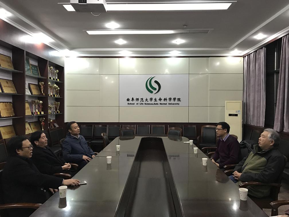 李院长一行在曲师大生科院副院长王仁君教授的陪同下先后参观了山东省强化重点实验室“南四湖湿地生态与环境保护实验室”、 生物学实验教学中心为“山东省普通高等学校实验教学示范中心” “生命有机化学分析实验室”、“现代生物学国家级虚拟仿真实验教学中心”;然后与该院党委书记徐来祥教授、院长杨月伟教授等专家领导就学科建设和实验室建设、考研经验等问题进行了深入探讨与交流。