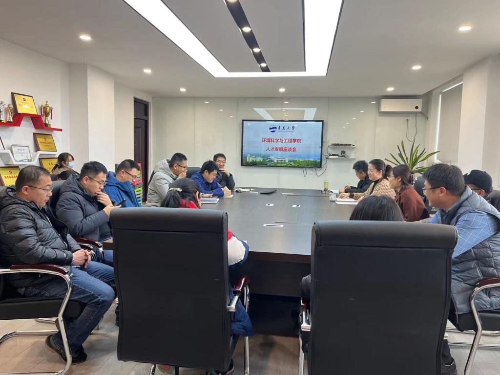 为贯彻落实学校人才队伍建设座谈会精神以及双代会第五次会议工作部署,助力学院青年教师成长,推动学院高水平人才队伍建设实现新突破,2月9日下午,环境科学与工程学院在博观楼429会议室召开人才发展座谈会。院党委书记张作祥,院长佘希林,党委副书记孙竹媛,副院长孔范龙、赵宗山,各团队负责人以及青年教师参加会议,会议由孙竹媛主持。