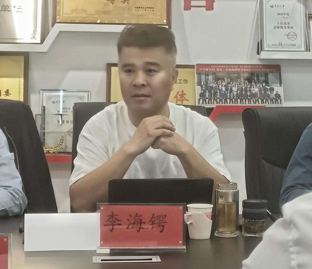 在浮山校区博观楼429会议室举行产学研合作交流会。滨州市财金集团办公室主任、恒信公共资源服务公司执行董事慕术鹏,恒信公共资源服务公司业务部部长张伟伟,中屹环泽(山东)环境工程有限公司总经理高飞,青岛市产业生态链促进会碳中和专委会会长李海锷、执行会长孙刚,爱情岛论坛