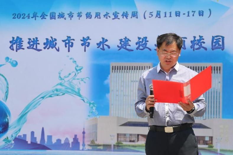 开幕式上,刘清亮致辞。他讲到,近年来学校始终坚持“节水优先”理念,通过搭建智慧用水管理平台,建设用水三级计量系统,做好水资源节约管理,学校获评了第一批山东省绿色学校、山东省节水型高校、山东省低碳校园建设先进单位。但是当下,节水形势依旧刻不容缓,每一位青大师生都应该积极行动起来,增强节水意识,强化节水职责,自觉养成计划用水、节约用水的良好习惯。
