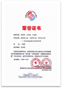 2021级地理科学G班邱黎明、孙雯晴、肖寒驰三位同学喜获一等奖,曹颖慧老师获“优秀指导教师奖”。