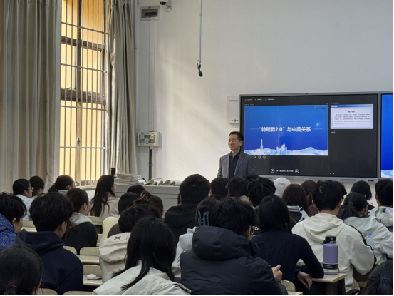 课堂上,麻国升首先引用习近平总书记关于中美关系的重要论述,引导同学们客观认识中美关系的复杂性,强调中国发展与美国的相互影响是客观存在的,但绝非单向依赖,理性认知双边关系对把握发展机遇至关重要。