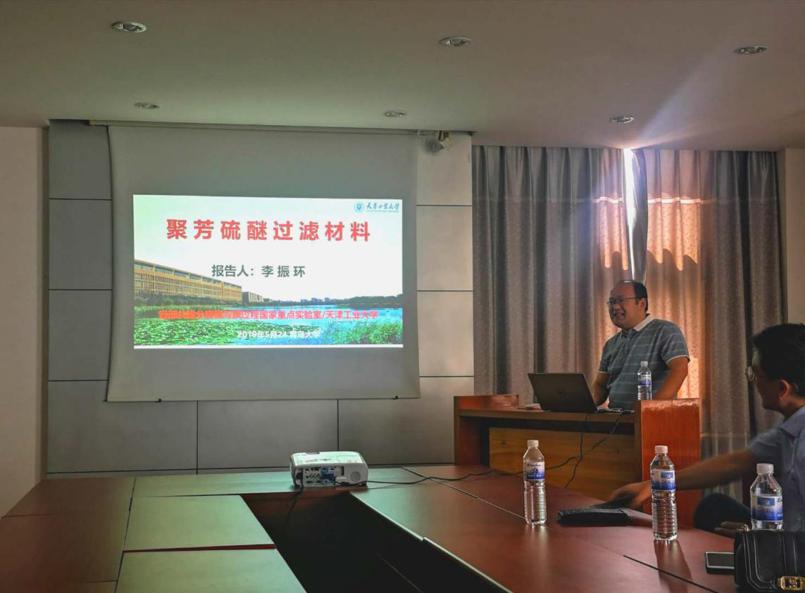 5月24日,应环境科学与工程学院邀请,天津工业大学材料科学与化学工程学院李振环教授在国家重点实验室423会议室做了题为《聚芳硫醚过滤材料》的学术报告,杨东江教授主持报告会,课题组老师和同学到会听取报告。