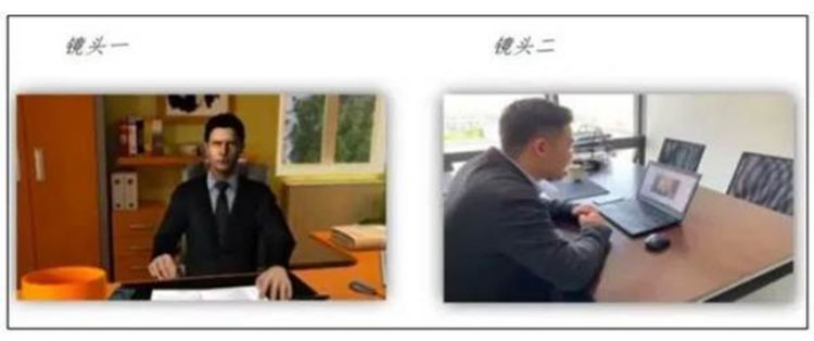 (2)复试(含演练)前按要求安装调试好设备。考生端两台设备开启摄像头,电脑自带摄像头对准考生本人,另一部电脑或手机摄像头从考生后方成45度拍摄,要保证考生考试屏幕能清晰地被复试小组看到,见附图: