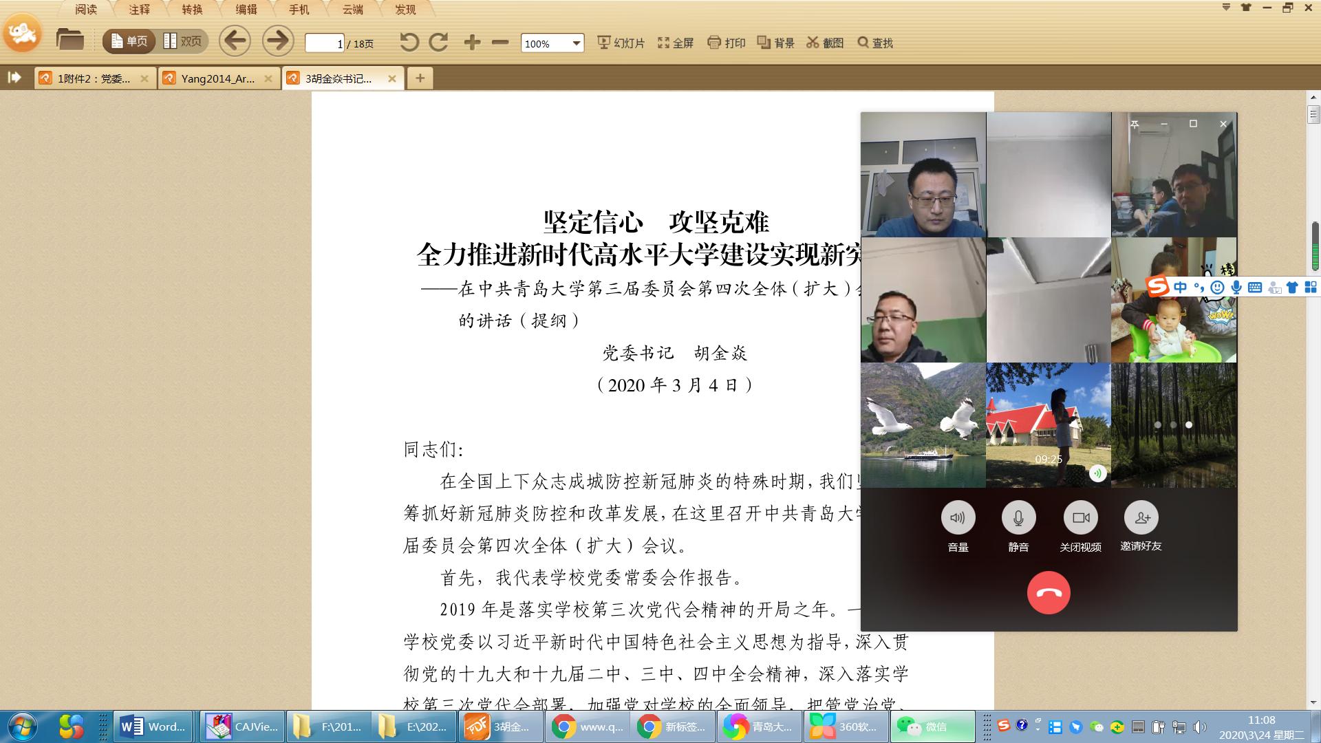 3月24日上午,为保证新冠肺炎疫情防控期间理论学习不间断,环境科学与工程学院环境生态系教工党支部利用微信网络平台开展线上专题学习研讨会。会议由党支部书记王森主持,全体党员参加。