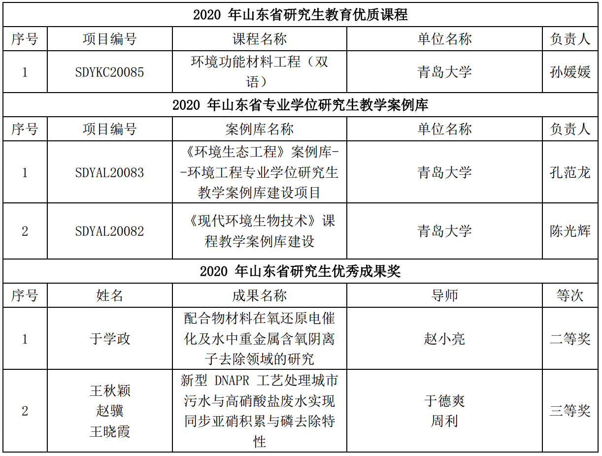 近日,山东省教育厅公布了《2020年山东省优秀博士硕士学位论文和研究生优秀成果奖名单的通知》(鲁教研函〔2020〕5号)、《2020年山东省研究生教育优质课程和专业学位研究生教学案例库立项建设名单的通知》(鲁教研函〔2020〕6号),爱情岛论坛