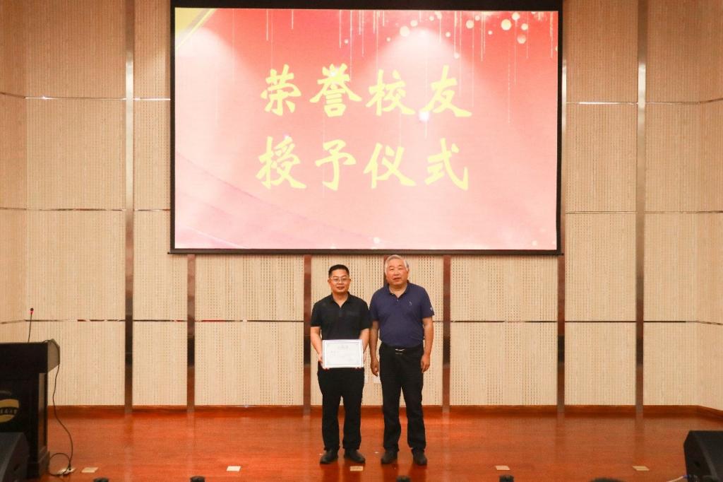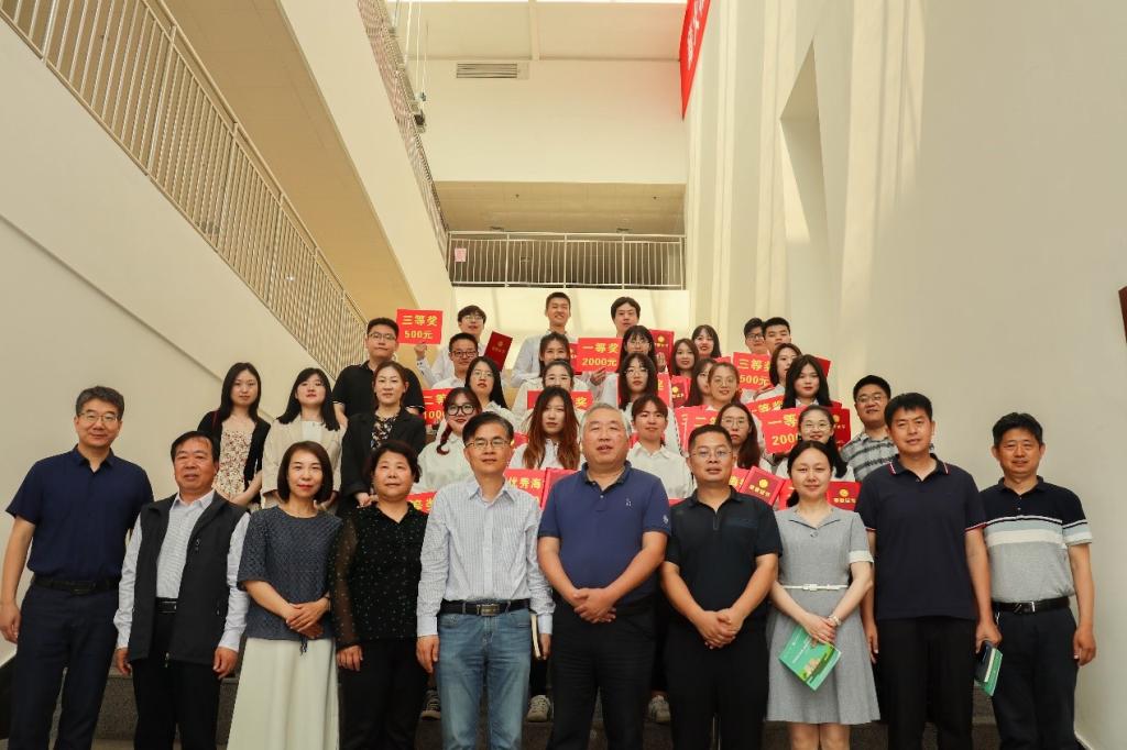 在颁奖环节,在场嘉宾和领导老师分别为研究生优秀报告一、二、三等奖、研究生优秀海报奖和本科生优秀奖颁发获奖证书和奖金。颁奖结束后,校企双方签署了共建基地学生创新创业教育实践合作协议,张启春和耿超共同为实践基地揭牌,院长李悦为耿超颁发了“荣誉校友”赠牌。最后,获奖同学2018级研究生楚光玉和2019级研究生杨唯真分别分享了各自的科研经历。