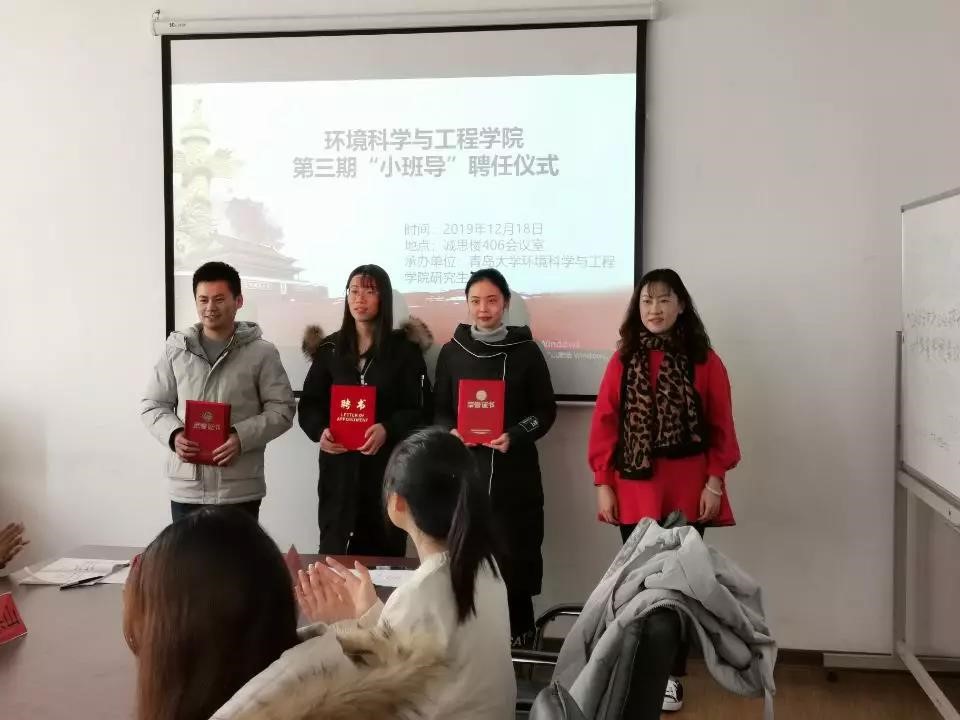 12月18日,环境科学与工程学院在浮山校区诚思楼406会议室举办第二期研究生“小班导”工作总结暨第三期研究生“小班导”聘任仪式。2019级研究生“小班导”成员和研究生会代表、2019级本科生班班长、团支书和学院党委副书记张作祥、2019级本科生班主任、辅导员共同参加。
