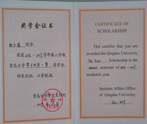 即使参加各类活动,学习也毫不松懈,张子漾同学认真的学习专业知识,并曾获得学校的多项奖学金。