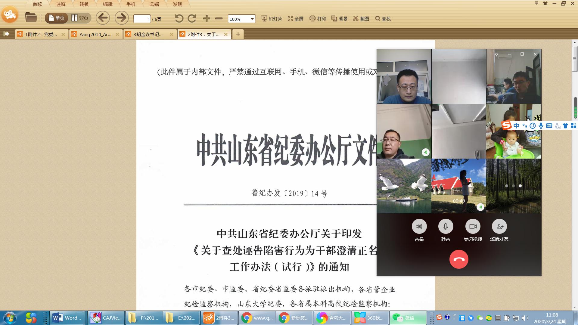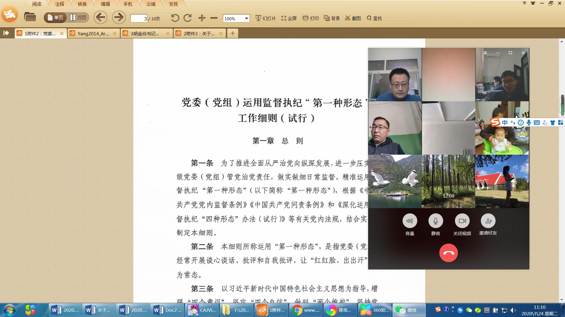 首先,王森向与会党员介绍了学校和学院关于疫情期间加强党支部学习的要求。指出加强支部党员的理论学习,既要发挥好以“学习强国”APP为主的网络平台工具在日常学习中的重要作用,同时也要做好党支部集体学习研讨的定期开展。随后,王森、姜志翔和李玲玉分别带领全体党员集中学习了《党委(党组)运用监督执纪“第一种形态”工作细则(试行)》《关于查处诬告陷害行为为干部澄清正名的工作办法(试行)》和《胡金焱书记在中共爱情岛论坛